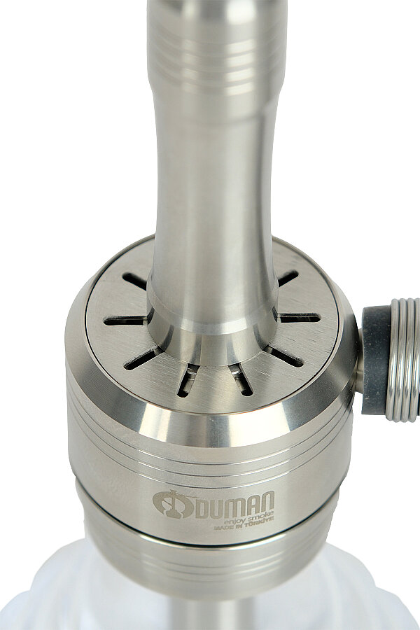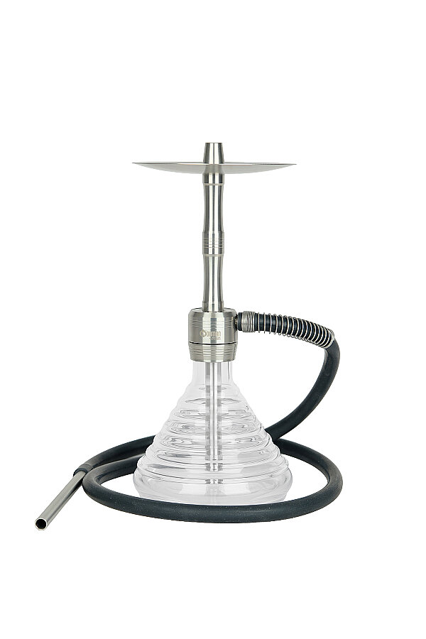 Modern basamaklı şeffaf cam tabana sahip kompakt paslanmaz çelik nargile. Sade ve modern bir görünüm sunar. Tamamen paslanmaz çelik yapısıyla sadece 2,3 kg ağırlığında ve 35 cm yüksekliğinde — hafif, ev kullanımı ve masa üstü kullanım için ideal boyutta. Sade bir masa seviyesi alternatifi arayan nargile kafeler için de uygundur. Hortum dahildir. Tek marpuç, 16 cm genişlik.