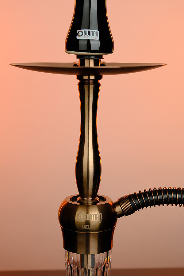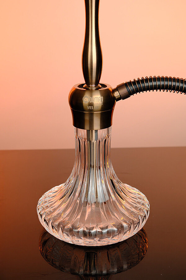 Geleneksel-modern füzyon tasarıma sahip orta boy paslanmaz çelik nargile. Zarif dilimli cam taban, cilalı çelik gövdeyle birleşerek modern mühendislik üzerine kurulu klasik bir görünüm sunar. 36 cm yüksekliğiyle Velos hem masa üstünde hem yerde rahatça kullanılabilir. Tepsi üzerindeki kömür ızgarası, kömürlerin söndürülmeden bekletilmesini sağlar. Gümüş, Bronz ve Altın renk seçenekleri mevcuttur. Tek marpuç, 16 cm genişlik, 3 kg.