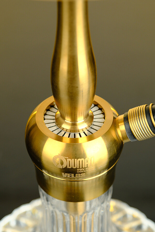 Geleneksel-modern füzyon tasarıma sahip orta boy paslanmaz çelik nargile. Zarif dilimli cam taban, cilalı çelik gövdeyle birleşerek modern mühendislik üzerine kurulu klasik bir görünüm sunar. 36 cm yüksekliğiyle Velos hem masa üstünde hem yerde rahatça kullanılabilir. Tepsi üzerindeki kömür ızgarası, kömürlerin söndürülmeden bekletilmesini sağlar. Gümüş, Bronz ve Altın renk seçenekleri mevcuttur. Tek marpuç, 16 cm genişlik, 3 kg.